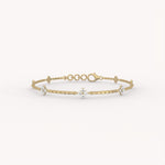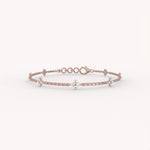 A delicate bracelet featuring a finely textured band that culminates in two graceful, pear-cut diamond blossoms. This piece symbolizes a beautiful connection, wrapping the wrist in continuous, subtle sparkle.