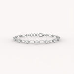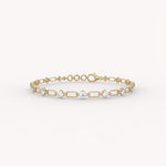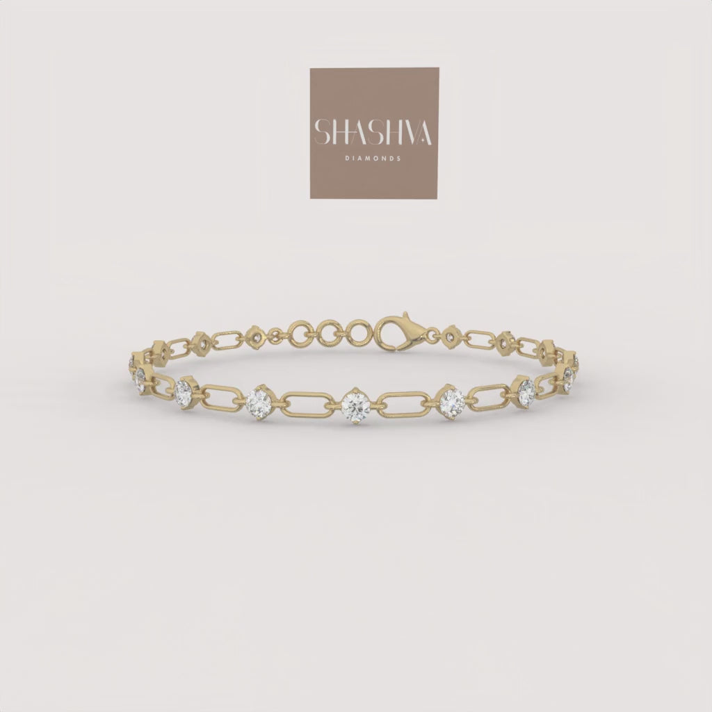 This bracelet marries the delicate sparkle of solitaire diamonds with a chic, contemporary elongated link chain. It is a refined staple piece, offering the perfect balance of structured gold and brilliant light for everyday luxury.