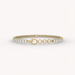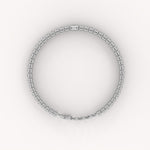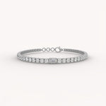 This classic round-diamond tennis bracelet features a commanding central baguette-cut diamond, creating a bold, singular point of focus. It represents a powerful fusion of timeless brilliance and architectural simplicity, designed for the modern collector.
