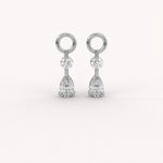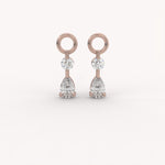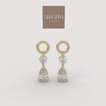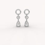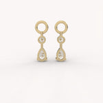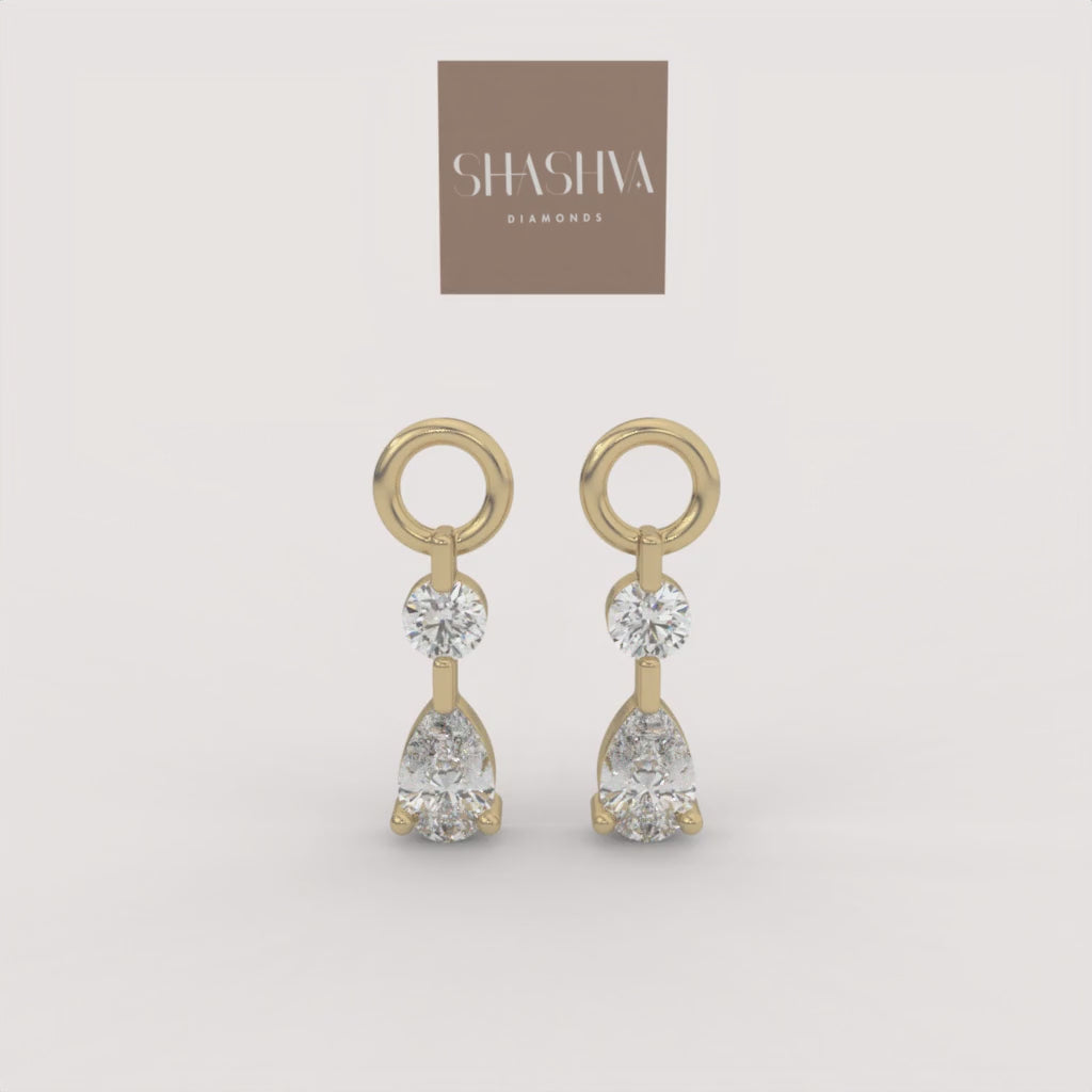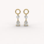 The Glimmer Charms are graceful drop earrings featuring two brilliant diamonds—a single round stone over a luminous pear-shaped drop—connected by fine gold links. This delicate, articulating design offers a constant, shimmering movement that catches the light beautifully.
