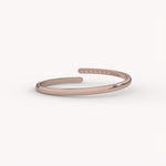 The Stride Cuff is a boldly minimalist, open design featuring a brilliant line of pavé-set diamonds that tapers into a smooth gold curve. Its modern, effortless structure offers a striking, clean line and can be worn beautifully on the wrist.