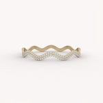 This distinctive Dual Sinus Curve Bracelet features two parallel rows of brilliant pavé diamonds that sweep across the wrist in a graceful, rhythmic wave. It is a stunning, dimensional bangle bracelet designed to create a vibrant, fluid line of light and luxurious movement.