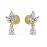 A truly enchanting design where a brilliant three-marquise cluster meets a graceful, elongated pear-cut diamond drop. These earrings offer a feminine, genuine light and elegant movement that beautifully frames the face.