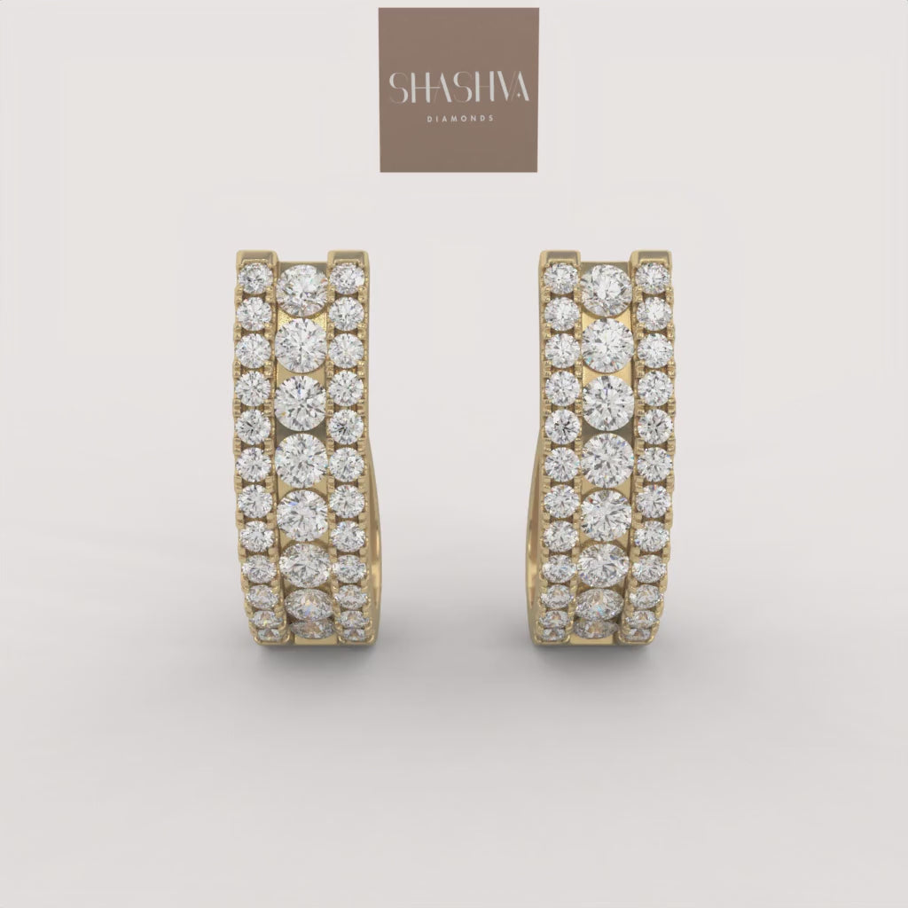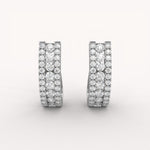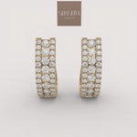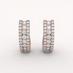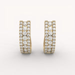 The Opulence Hoops are wide, substantial hoops entirely covered in three dazzling rows of brilliant pavé diamonds set in gold. This glamorous design offers breathtaking sparkle and dimension, making a bold statement of luxurious confidence.