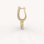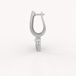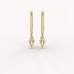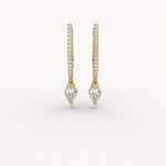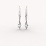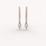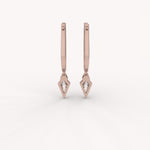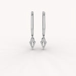 These dynamic earrings contrast a classic pavé-diamond hoop with the striking geometry of an inverted, kite-shaped solitaire diamond drop. The fusion of soft curves and sharp angles creates a sophisticated, eye-catching dangle with brilliant light.