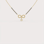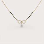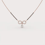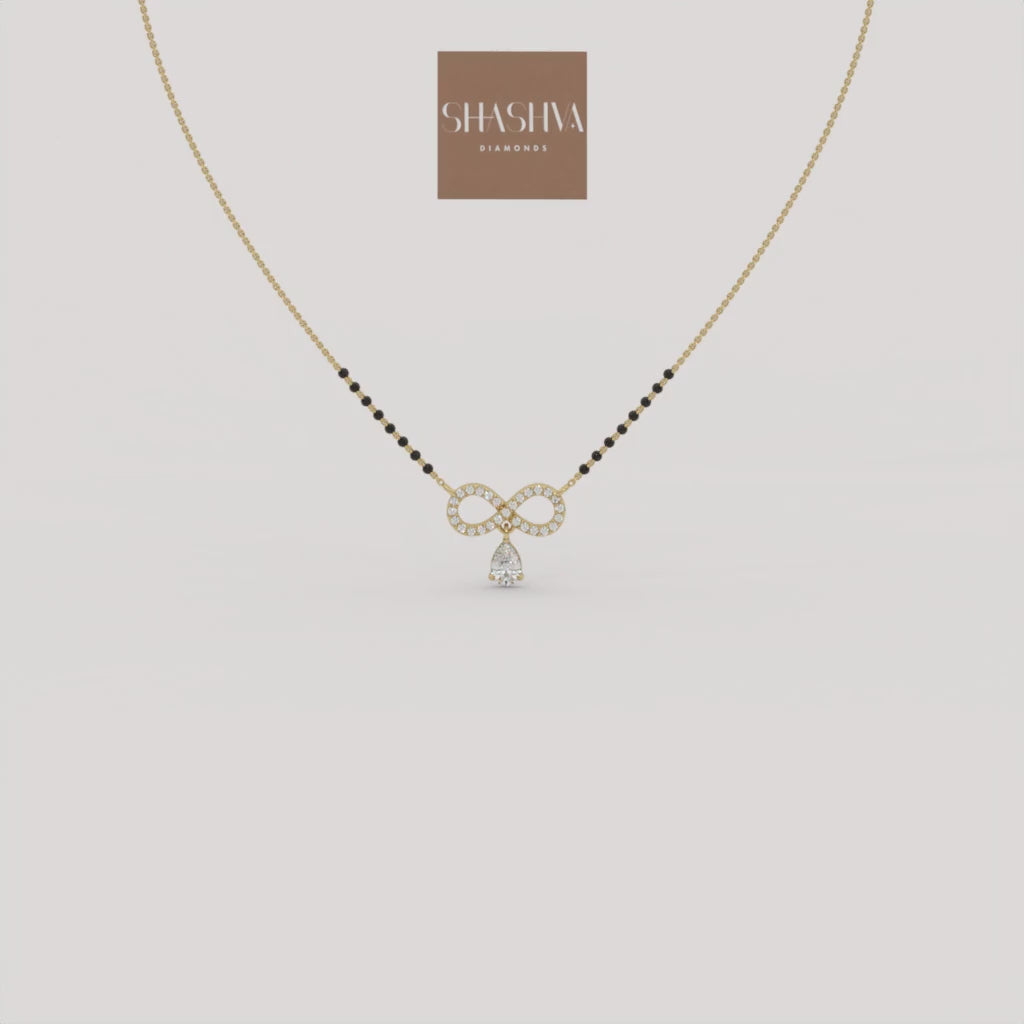 Symbolizing endless love, the delicate diamond-set infinity pendant cradles a brilliant pear-shaped diamond drop. A modern heirloom that beautifully honors tradition, representing a bond of eternal devotion.