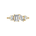 A breathtaking band that orchestrates a medley of brilliant diamond cuts—including baguettes and rounds—into three magnificent, continuous rows. This maximalist design delivers extraordinary fire, texture, and a stunning presence on the hand.