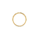 A subtle whisper of gold, finely edged with delicate milgrain detailing and scattered brilliant diamonds for a touch of light. Effortlessly elegant, this band is designed for comfortable everyday wear and sophisticated stacking.