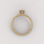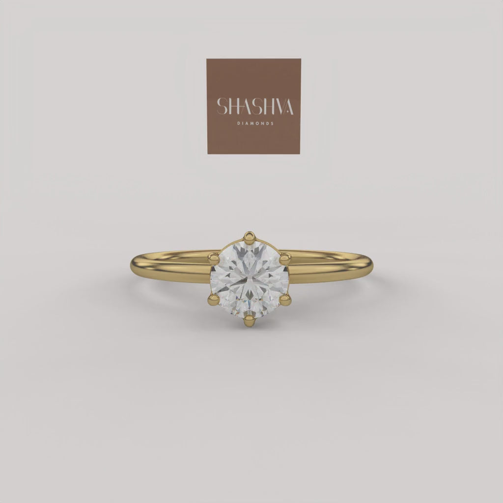 The Prong Solitaire Essential Ring is the definition of timeless elegance, showcasing a single, brilliant round diamond in a secure six-prong setting atop a slim, polished gold band. Its pure, elevated design is a foundational piece perfect for everyday wear or as a classic commitment ring.
