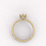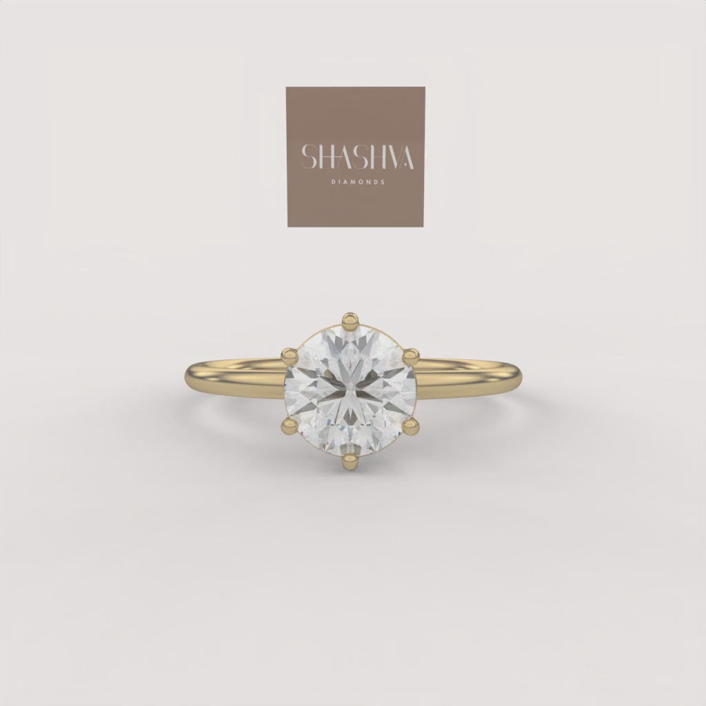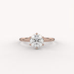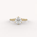 The Prong Solitaire Essential Ring is the definition of timeless elegance, showcasing a single, brilliant round diamond in a secure six-prong setting atop a slim, polished gold band. Its pure, elevated design is a foundational piece perfect for everyday wear or as a classic commitment ring.