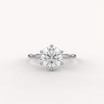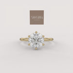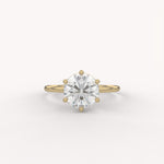 The Prong Solitaire Essential Ring is the definition of timeless elegance, showcasing a single, brilliant round diamond in a secure six-prong setting atop a slim, polished gold band. Its pure, elevated design is a foundational piece perfect for everyday wear or as a classic commitment ring.