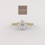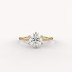 The Prong Solitaire Essential Ring is the definition of timeless elegance, showcasing a single, brilliant round diamond in a secure six-prong setting atop a slim, polished gold band. Its pure, elevated design is a foundational piece perfect for everyday wear or as a classic commitment ring.