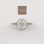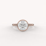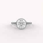 The Signature Bezel Solitaire Ring features a perfectly cut round diamond framed in a clean, contemporary gold bezel setting. This modern, sculptural design secures the stone in a continuous circle of precious metal, offering pure geometry and effortless wearability.