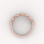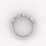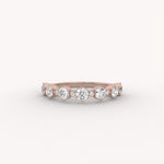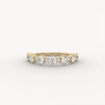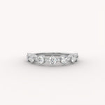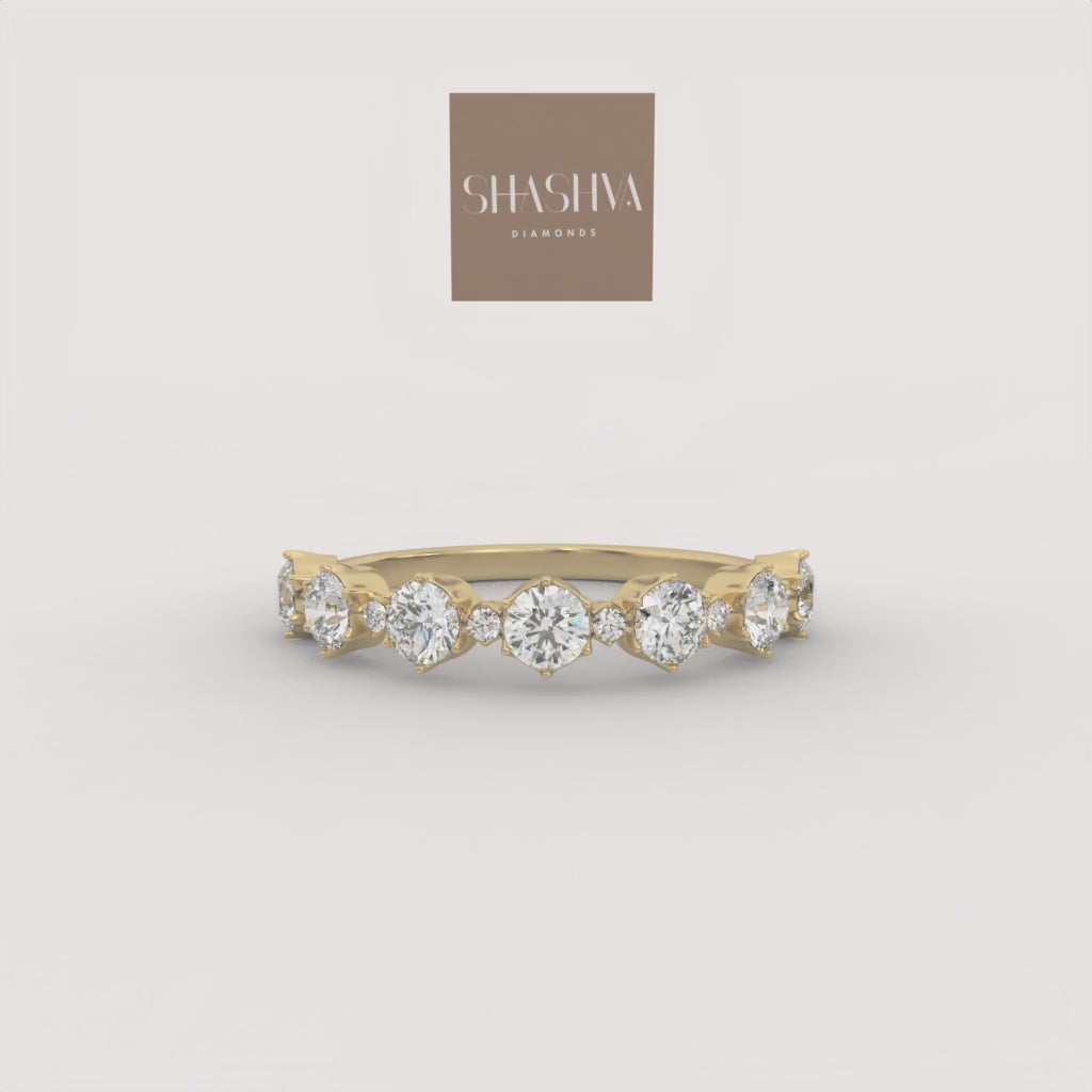 The Orion Band is a graceful half-eternity ring featuring a continuous, alternating pattern of brilliant round diamonds. The varying stone sizes are precisely set in a delicate shared-prong setting, creating a rich, textured display of continuous symmetry and rhythm.
