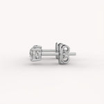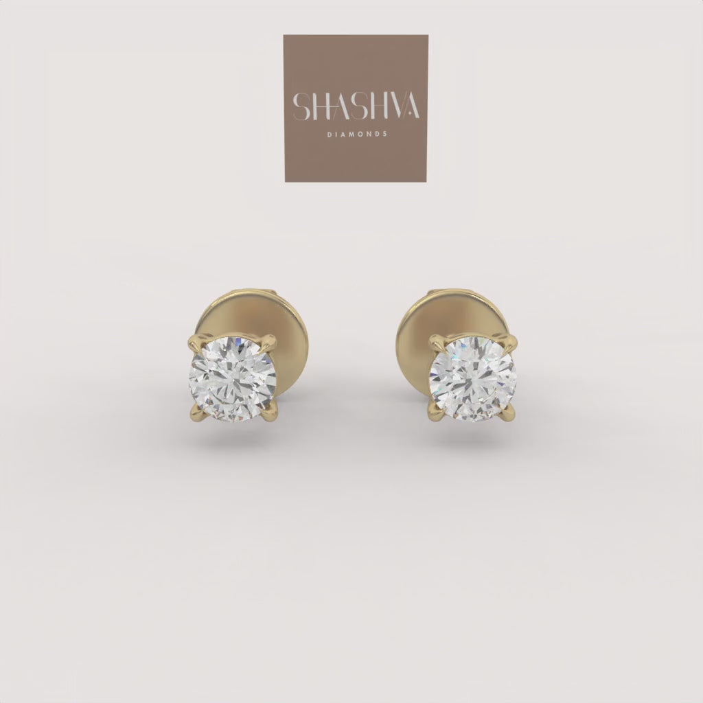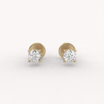 The Prong Solitaire Studs are the absolute classic, showcasing a single, brilliant round diamond securely held by a minimalist four-prong basket setting. This essential design offers pure, confident geometry and makes the diamond the central focus.