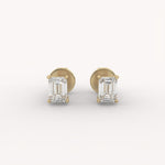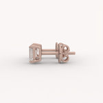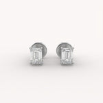 These Emerald Prong Solitaire Studs feature a single, breathtaking emerald-cut diamond held securely by four precise prongs. The step-cut facets create deep, architectural planes, offering a sophisticated and clean geometry ideal for the modern collector.