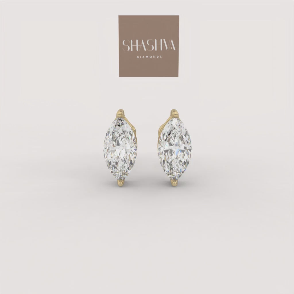 These exquisite Threaded Marquise Studs feature brilliant, boat-shaped marquise diamonds secured in a minimalist four-prong setting that highlights the elegant cut. Their elongated shape and secure mounting provide maximum light return, creating a sophisticated and essential diamond earring.