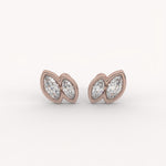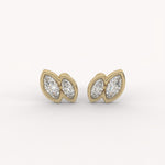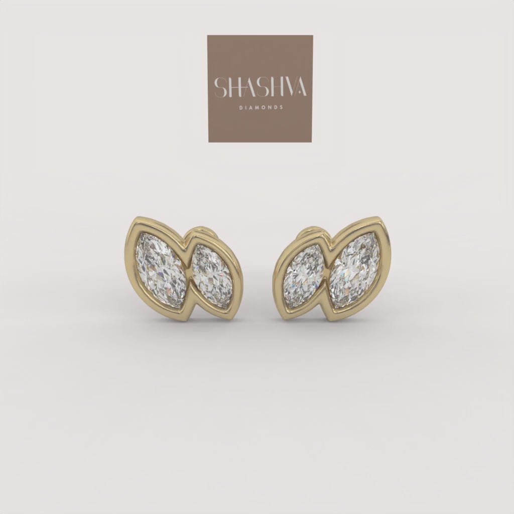 The Wisp Duo Earrings feature two elongated marquise-cut diamonds, set horizontally side-by-side within sleek, uninterrupted gold bezels. This minimalist, yet distinctive design creates a clean, flowing silhouette with impressive, mirror-like depth.