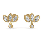 An enchanting floral motif created by three luminous marquise-cut diamonds, from which a single brilliant round diamond gracefully dangles. This captivating "Bloom" design delivers an ethereal sparkle and delicate movement.