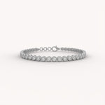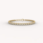 The Heirloom Bezel Bracelet features a continuous circle of brilliant diamonds, each encased in a gold bezel with delicate milgrain detailing for a vintage touch. This timeless piece offers comforting weight and continuous, understated sparkle, destined to be cherished for generations.
