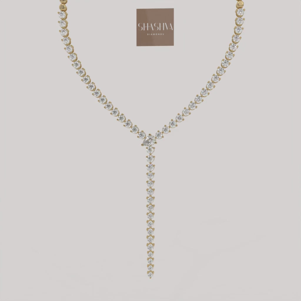 A dazzling cascade of brilliant diamonds forms a captivating Y-design that elongates the neck with regal drama. This exquisite necklace offers a spectacular, feminine statement, befitting the unparalleled luxury of its namesake.