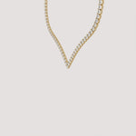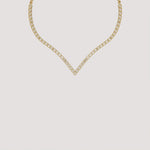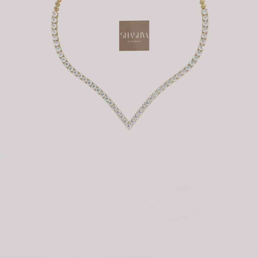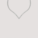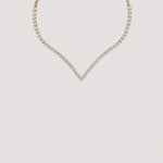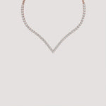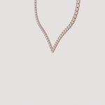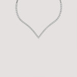 A mesmerizing line of brilliant diamonds flows into a bold, flattering V-shape that beautifully highlights the décolletage. Offering a clean, modern, and supremely classy statement, this piece is the epitome of sophisticated elegance.