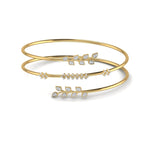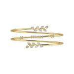 An artistic statement piece, this cuff is a stunning blend of gold artistry and diamond brilliance. Two golden bands intertwine, featuring organic motifs of sparkling leaves and flowers, destined to turn heads.