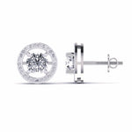 Designed to perfectly illuminate the face, these studs feature a brilliant solitaire diamond ringed by a stunning pavé diamond halo. The intricate open circle setting maximizes light reflection, delivering spectacular, all-around radiance.