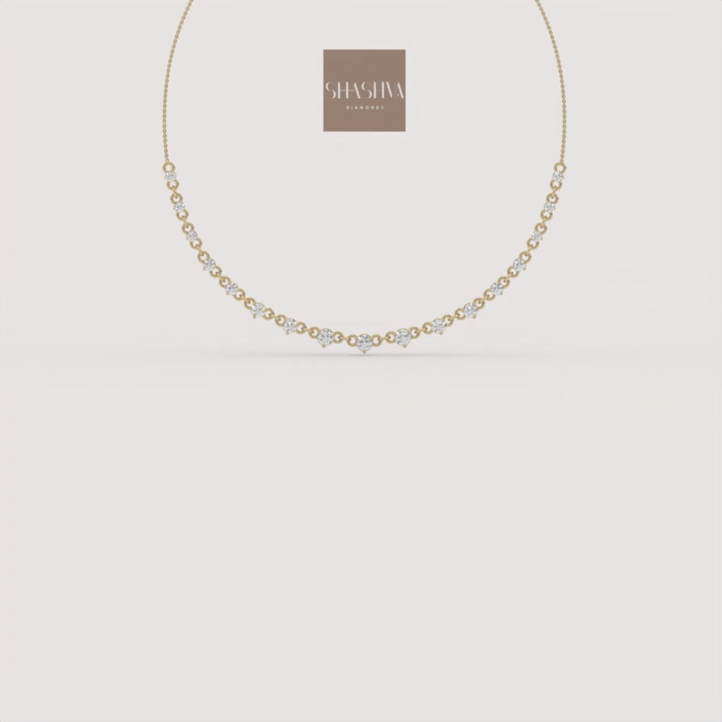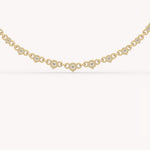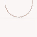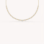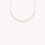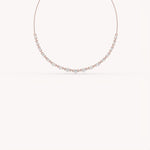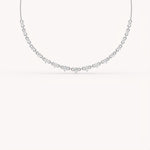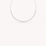 A continuous line of brilliant pave-set diamonds forms a graceful, fixed crescent that elegantly traces the collarbone. This supremely feminine and serene design offers clean lines and continuous sparkle for quiet, enduring class.