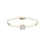 The Gleaming Solitaire Bracelet beautifully marries minimalist design with ultimate brilliance. A single, captivating solitaire diamond is set on a whisper-thin gold chain, flanked by delicate diamond accents for subtle, continuous sparkle.