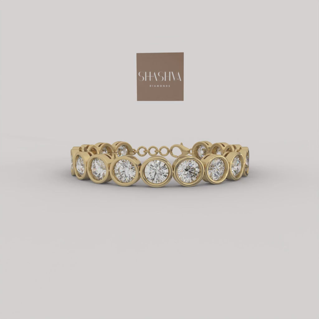 A modern interpretation of the classic tennis bracelet, featuring a continuous line of brilliant diamonds securely encased in smooth, polished bezels. This design offers snag-free comfort and uninterrupted, contemporary sparkle.