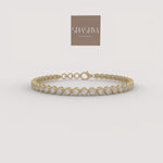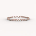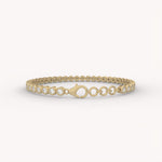 The Heirloom Bezel Bracelet features a continuous circle of brilliant diamonds, each encased in a gold bezel with delicate milgrain detailing for a vintage touch. This timeless piece offers comforting weight and continuous, understated sparkle, destined to be cherished for generations.