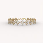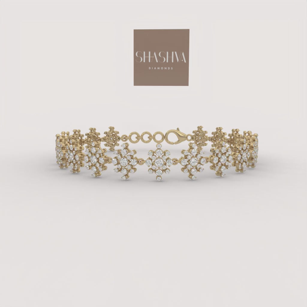 The Majesty Cluster Bracelet is a breathtaking assembly of large, interconnected diamond floral clusters, each bursting with light and intricate pavé detailing. This spectacular, wide bracelet delivers maximum brilliance and dimensional luxury, asserting pure, undeniable glamour.