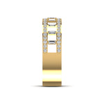 A luxurious and elegant eternity band where brilliant round diamonds are set in an intricate pattern that forms a subtle, continuous crown motif. This elevated design delivers maximized sparkle and makes a perfect, regal band.