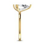 This captivating solitaire features a brilliant pear-cut diamond, elegantly secured with fine, beaded threading accents for a touch of vintage charm. The design's elongated silhouette creates a beautifully slimming and luxurious statement on the hand.