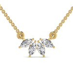A luminous cluster of four marquise diamonds fan out in a breathtaking display, capturing and magnifying the light with unparalleled radiance. This unique arrangement delivers a stunning, modern brilliance to the neckline.