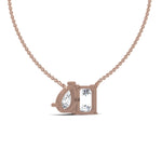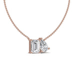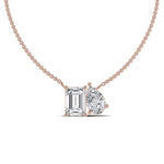 A deeply symbolic design featuring an exquisite pairing of an Emerald-cut and a Pear-cut diamond nestled together to represent a beautiful union. This elegant duo offers a subtle, brilliant reminder of enduring connection.