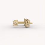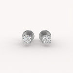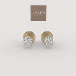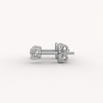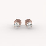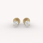 The Prong Solitaire Studs are the absolute classic, showcasing a single, brilliant round diamond securely held by a minimalist four-prong basket setting. This essential design offers pure, confident geometry and makes the diamond the central focus.