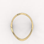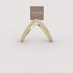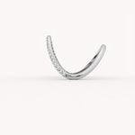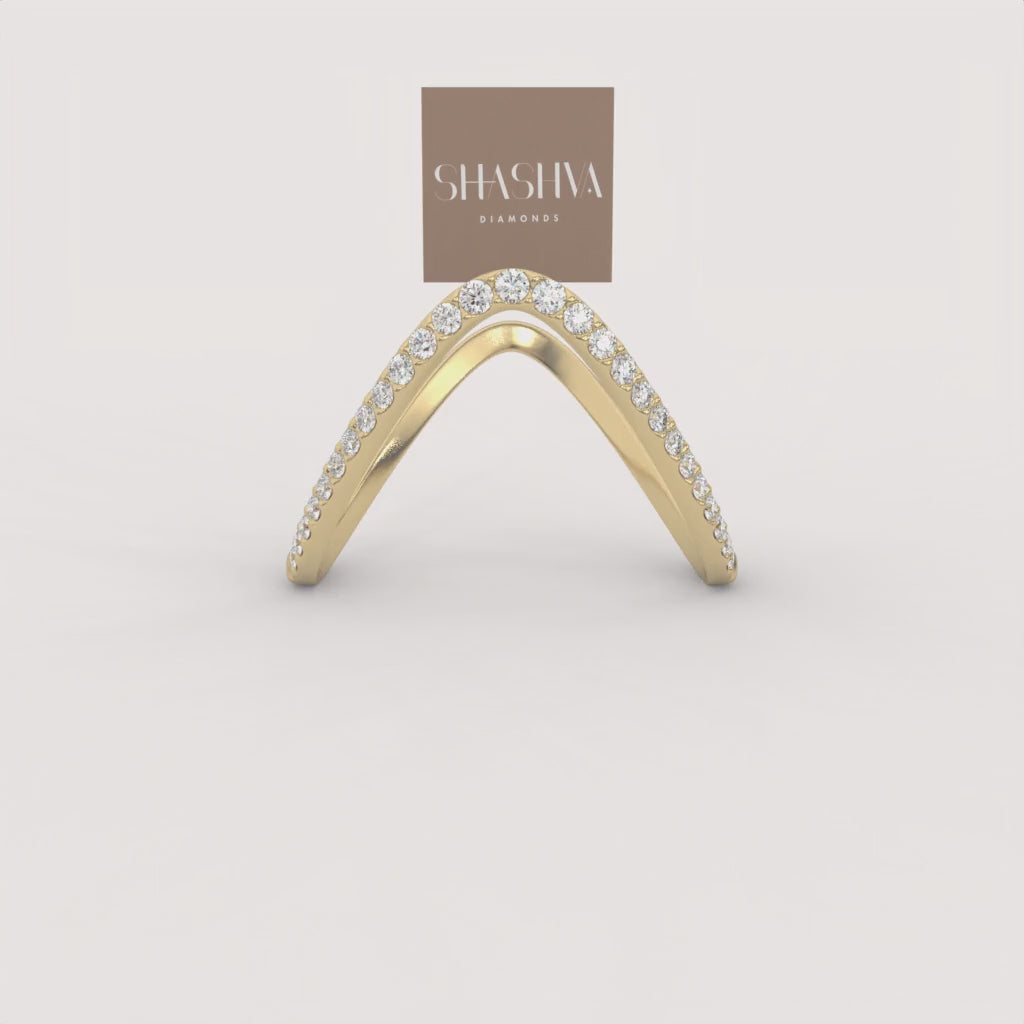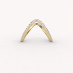The Vow Interlock Ring is a delicate and meaningful ring/stacking piece, gracefully sculpted into a shimmering chevron designed to embrace and enhance a central solitaire. Its beautifully curved form is pave-set with brilliant diamonds, symbolizing an enduring promise and an everlasting union.