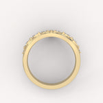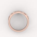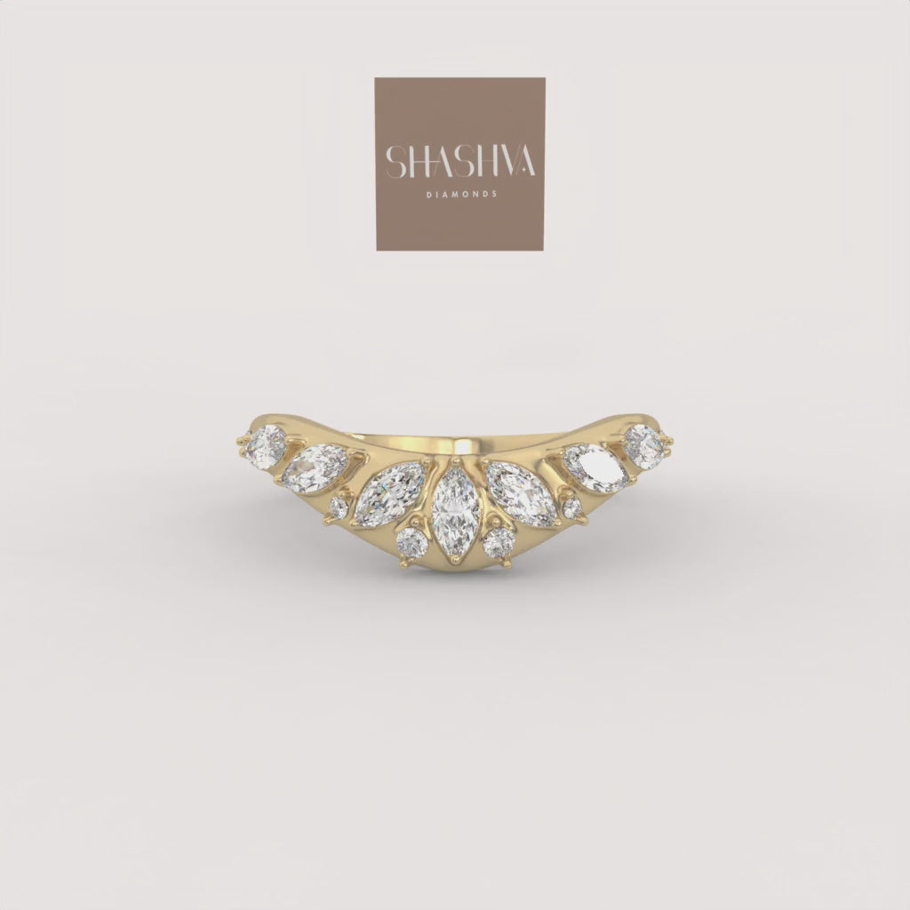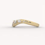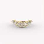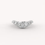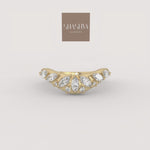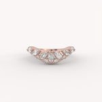 The Lunula Ring is a bespoke enhancer band featuring an elegant crescent of alternating marquise and round diamonds. Designed to beautifully stack with a solitaire, this piece provides an organic, fan-like cluster that dramatically frames a central engagement ring.