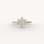 A delicate bloom of seven brilliant diamonds, meticulously clustered to capture the timeless joy of a daisy. Set on a slender gold band, this ring is the epitome of subtle, enchanting elegance.